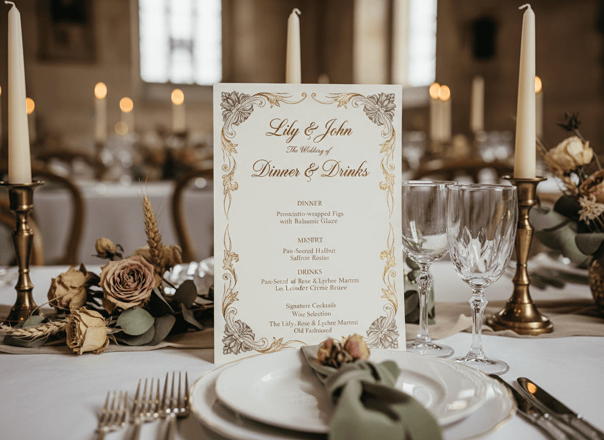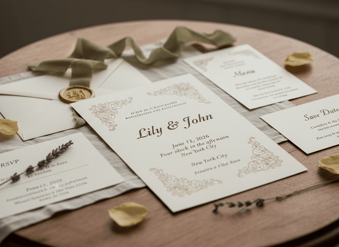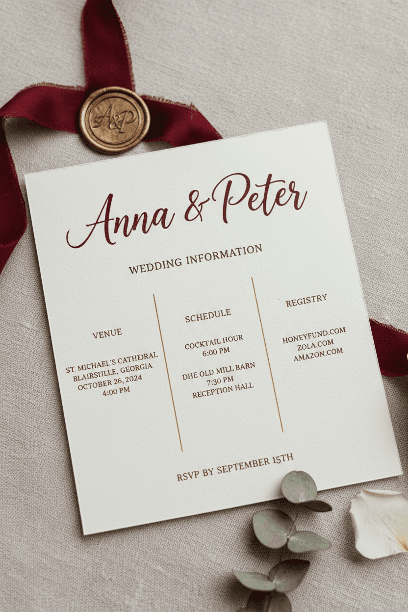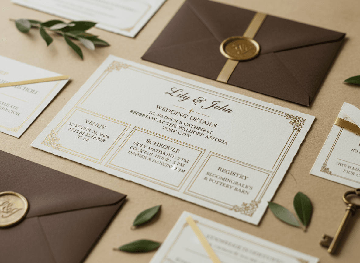 Choose your theme, colors, and names to define the look and feel of your wedding.
