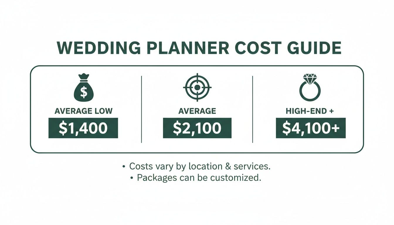 The quick answer is that the average cost of a wedding planner is $2,100 nationally, but that number can swing wildly from $1,400 to over $4,100. Think of this not as just another line item on a spreadsheet, but as an investment in a calm, organized, and genuinely enjoyable wedding planning experience.