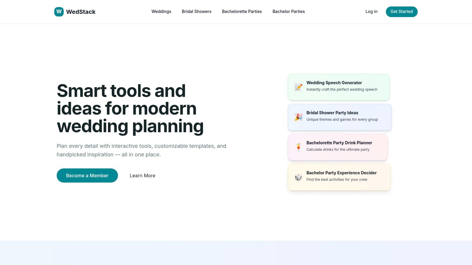 Instead of managing your guest list or budget, WedStack focuses on content creation and inspiration. Its AI writers can help overcome writer's block for heartfelt vows or a humorous best man speech, while its generators provide quick ideas for everything from social media captions to unique event themes. It acts as a digital assistant for the smaller, more personal details of wedding planning.