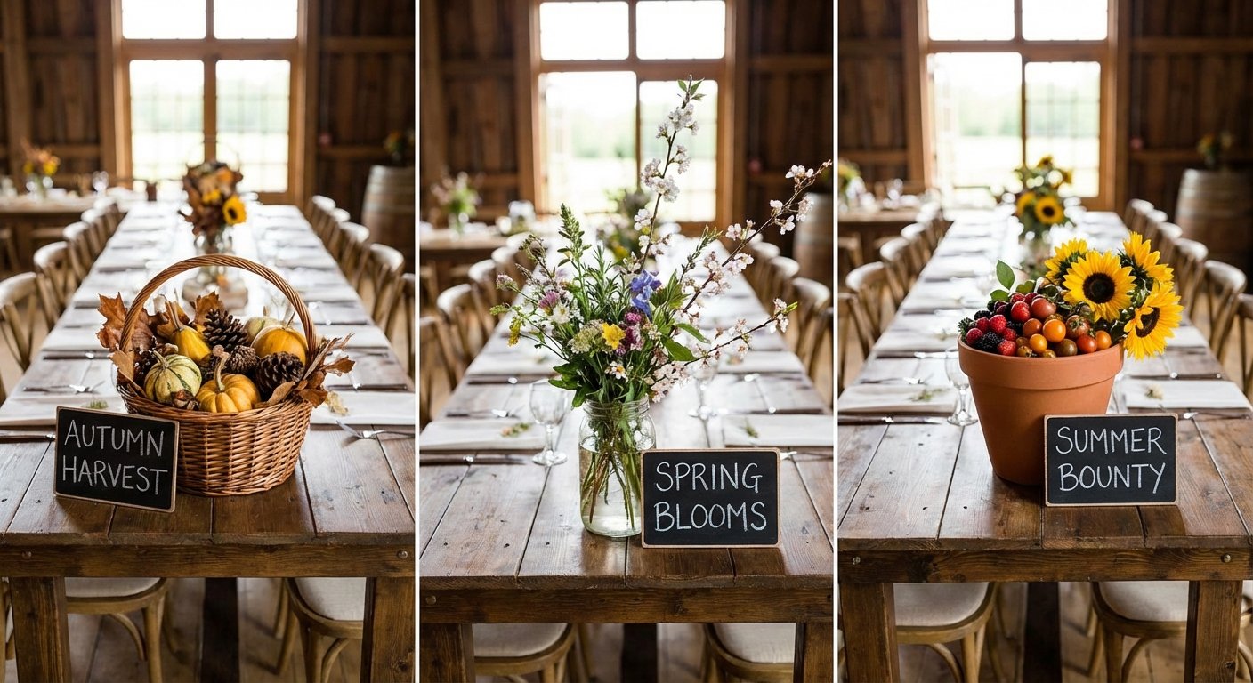 A deeply personal and sustainable approach, seasonal centerpieces celebrate the authentic beauty of your wedding's time and place. This philosophy involves using locally-sourced florals, produce, and natural elements that are naturally in-season, creating a design that feels fresh, vibrant, and contextually perfect. By embracing what your region offers, you support local growers and create decor that is both eco-conscious and uniquely reflective of your celebration's setting.