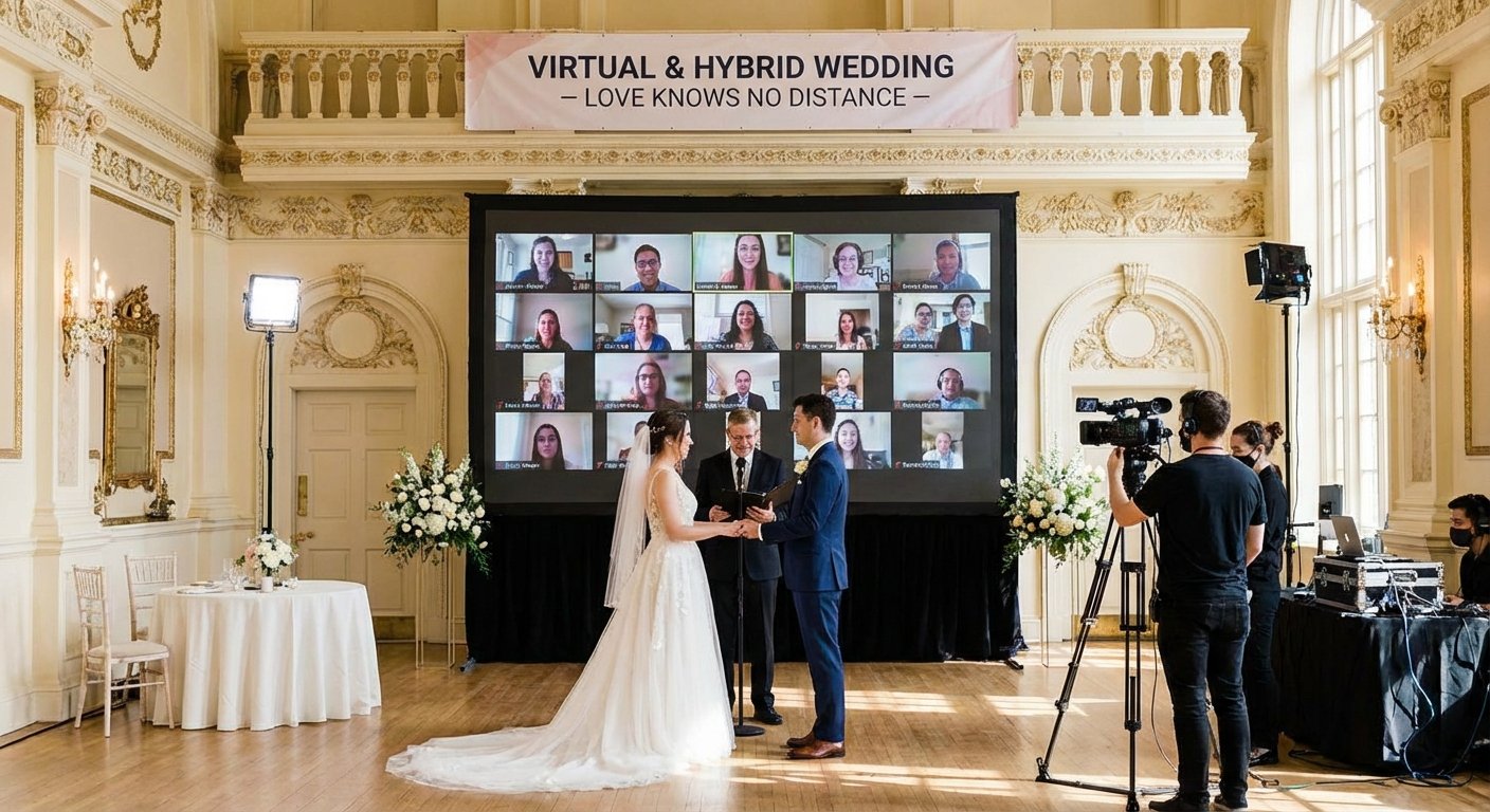 A virtual or hybrid ceremony is a modern and inclusive approach that blends in-person attendance with digital participation. This format uses live-streaming technology to broadcast your wedding to guests who cannot attend physically, making it one of the most thoughtful unique marriage ceremony ideas for couples with international family or friends with travel limitations. It ensures that everyone you love can witness your vows in real-time, no matter where they are in the world.