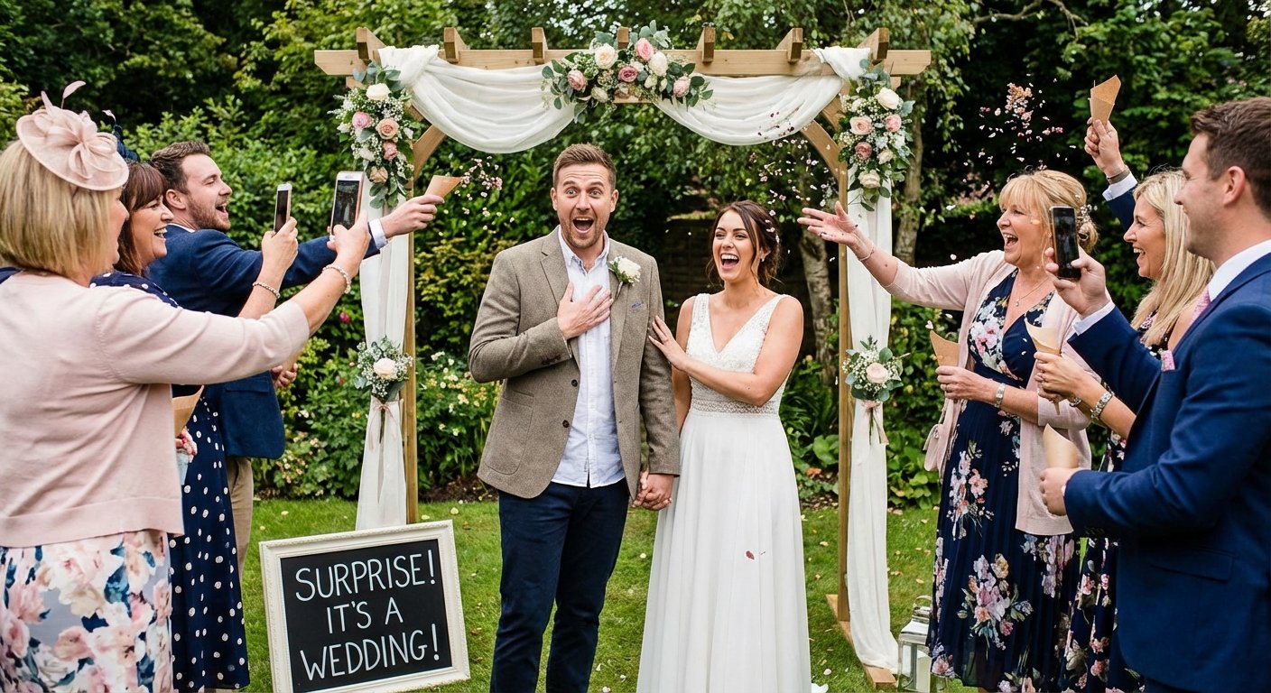 Plan the Reveal: Work with your officiant to script the surprise moment. It could be a toast that transitions into the ceremony or a sudden music change. The key is a clear, dramatic shift from "party" to "wedding."