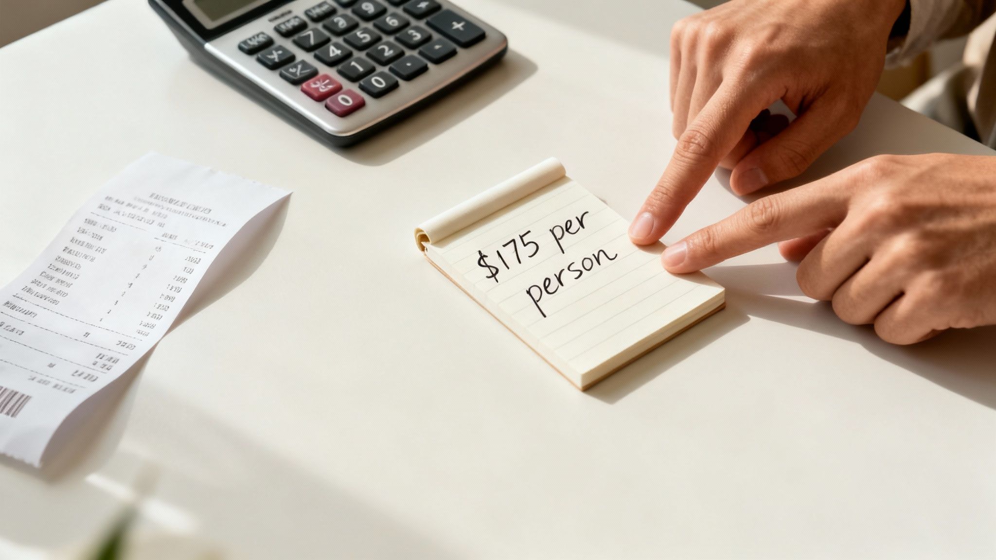Once you have rough estimates for these, add them up and divide by your target guest count. It gives you a sobering, but incredibly useful, "per-person" cost. If your venue has a food and beverage minimum of $15,000 for 100 guests, you're already starting at $150 per person before you’ve even bought a single stamp or rented a single fork.